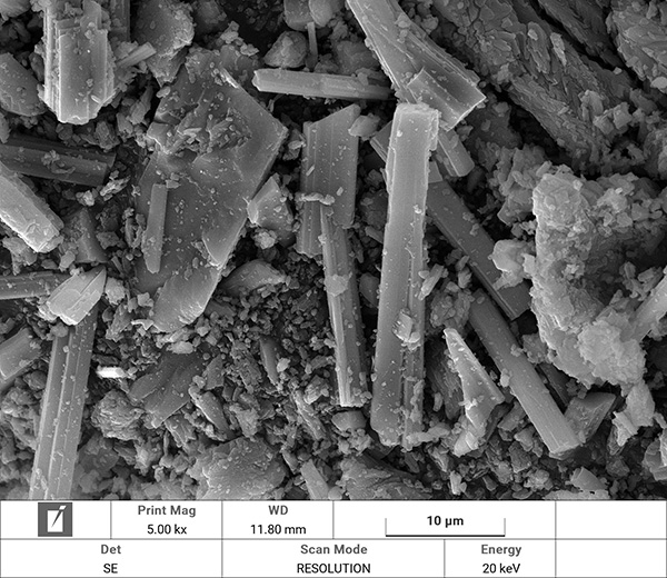 همانگونه که در تصاویر SEM مشاهده می گردد گچ α دارای بلورهای سوزنی مانند و با درجه بالایی از درهم تنیدگی است در حالیکه گچ β مورفولوژی متشکل تز ذرات نامنظم و پوسته پوسته است و بلورهای های با طول کوتاه تری را نشان می دهد که کمتر در هم تنیده شده اند